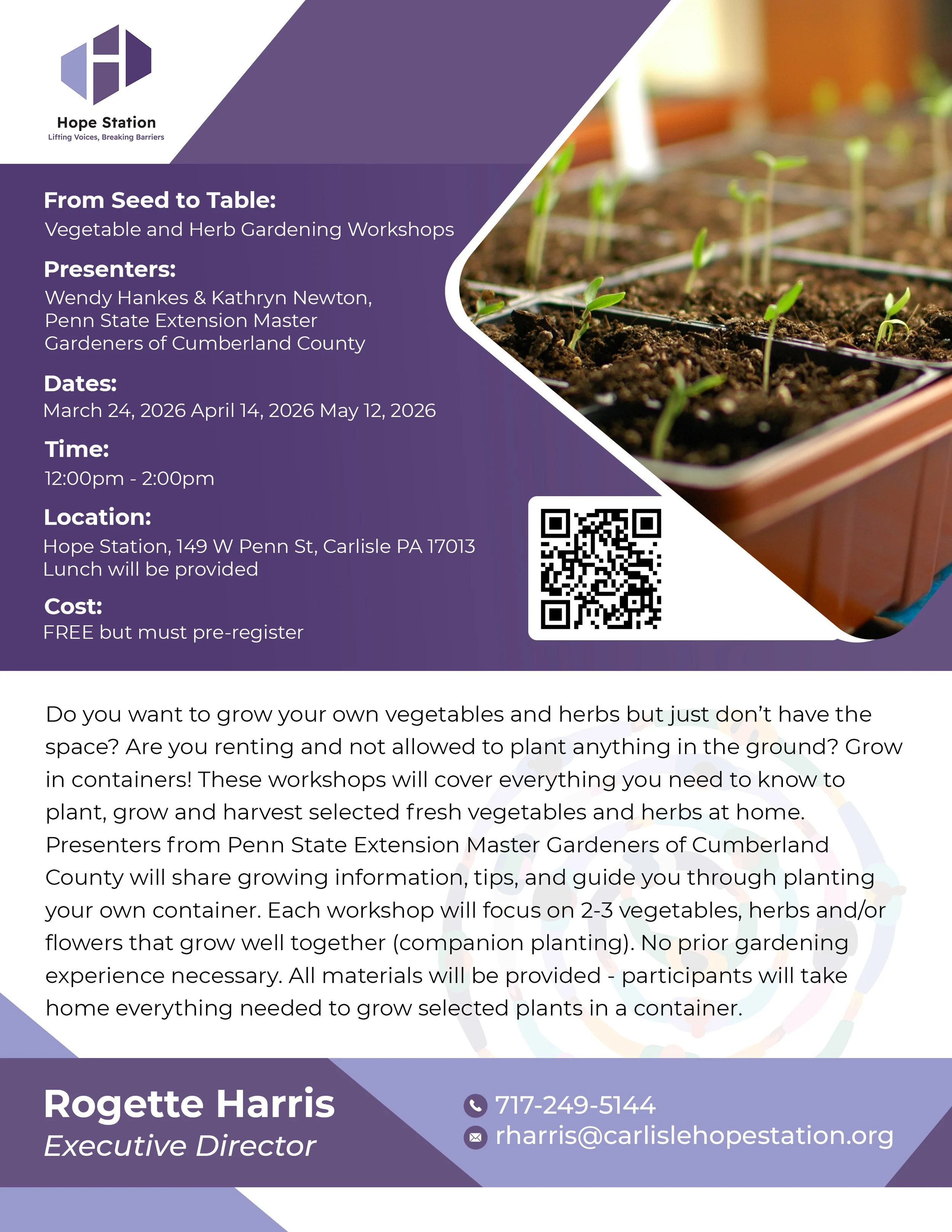 May 12, 2026: From Seed to Table: Vegetable and Herb Gardening Workshop